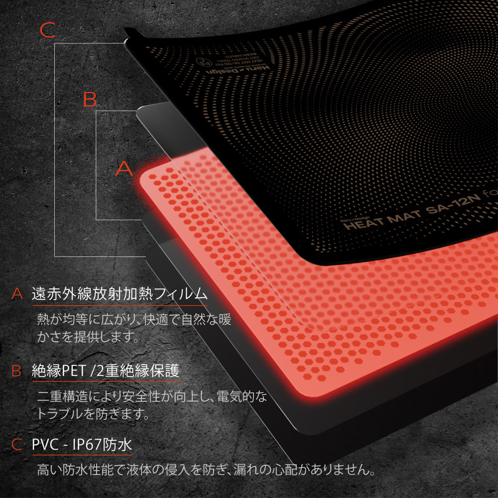 ヘキサゴンパターン遠赤外線放射フィルム式で対象物をしっかり温めることが出来ます。高出力110Wで設定温度をしっかりキープ。低ワットによる常時通電やオンオフ乱発を防止し節電効果にも貢献。(記憶機能)メモリ内蔵コントローラーでスイッチボットやプログラムタイマーがご利用頂けます。汚れが目立たないドットグラデーションパターン。コントローラーで温度調整が可能なので植物育成や爬虫類、鳥類などペット全般への加温にも最適です。