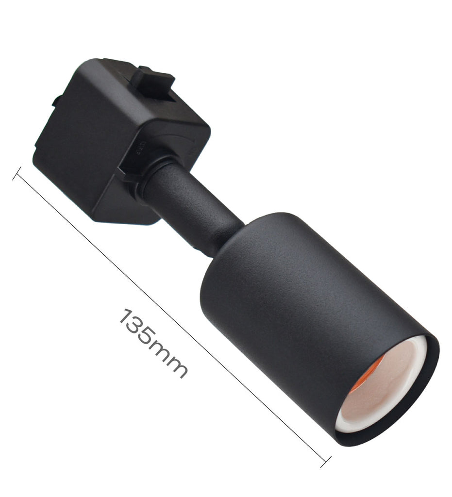 ライティングレール(ダクトレール)専用のソケット(口金サイズE26)2個入り。ライトは含まれません。接続する口金側は円形に対してライティングレール側はレール形状に合わせたスクエア型です。マットブラック色と合わせて質感形状(エンボス調)にも配慮があります。重量のあるLEDライトにも対応しています。重さが首が倒れる心配はありません。(400g以下を推奨)LED60W以下をご利用ください。ソケット側は不燃性の高いスチールと陶器で構成されます。横旋回345度、縦旋回85度(可動域には僅かな製品個体差があります)PSE適合製品。